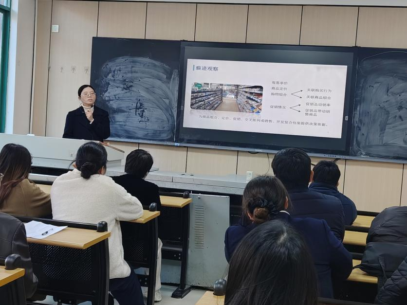 课堂上,万老师系统阐述了消费者行为痕迹观察的基本方法。她结合行业实践案例,清晰讲解了如何通过分析消费者在消费场景中的各类痕迹,精准洞察其消费偏好、决策逻辑与行为特征。她通过设问、小组思考等互动环节调动在场人员的积极性,有效提升课堂实效,展现了良好的教学能力。